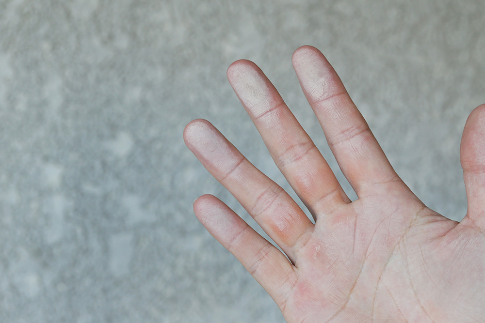 壁に触れると粉状のものが付着する状態を指します。塗膜の劣化が原因のため、塗替えを検討しましょう。